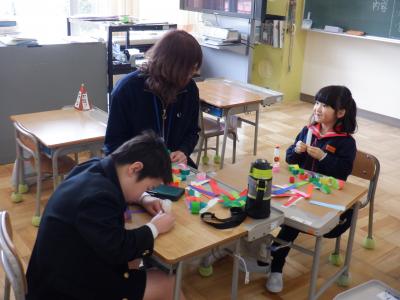 ひばり学級では、「1年間ありがとうの会」の準備をしていました。工夫して、飾りつけを作っています。