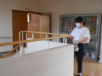 6月1日にお知らせした通り、PTAの執行部を中心とした方々が毎日消毒をしてくださっています。
