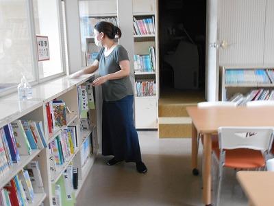 これまで、密を防ぐ意味やこまめな消毒ができないことから、図書室の開館を限定していましたが、石畠さんが来てくださったので、15日からは毎日開館します。休業中に、図書館担当教諭が新しい本をたくさん購入していてくれたこともあり、きっと、子供たちはたくさん本を読んでくれることでしょう。