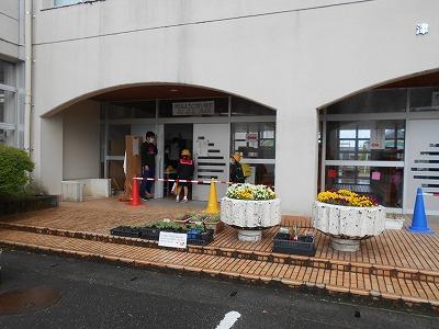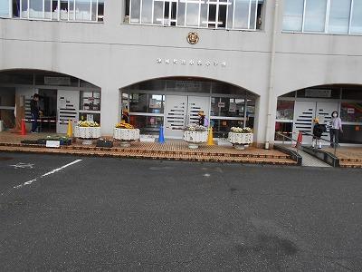 今日の登校日。子供たちは、奥の玄関から入ります。