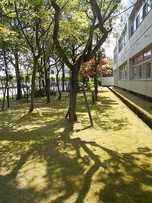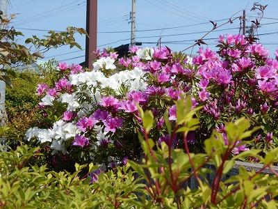 学校前のつつじがきれいです。周辺の木の剪定も北村さんがしてくださっていました。