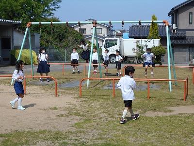 ブランコで遊ぶ時も、手洗いをするときも、間をあけていました。