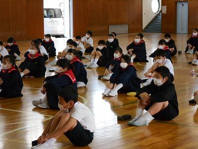 天気のいい時は外で体育の授業をすることを基本としていますが、暑さが心配な時は、準備体操は体育館で間隔を取って行い、主運動は運動場で行う等、熱中症に配慮しながら授業をしています。