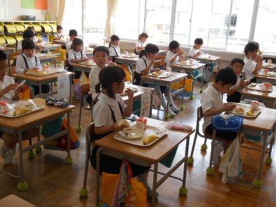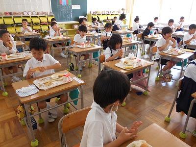 給食は簡易給食で、汁物がなかったため、やや物足りなさそうな子供たちもいましたが、それでも、久し振りに友達と食べる給食は、おいしかったようです。