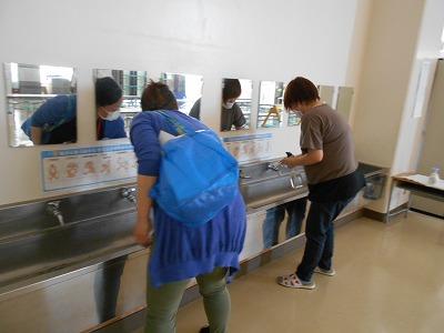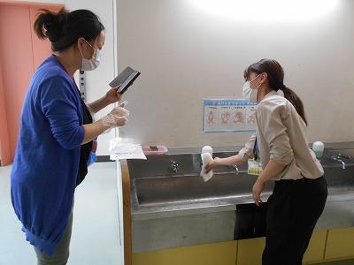 まずは、消毒の仕方を養護教諭から習い、他のPTAの方にも流せるように動画に撮りました。