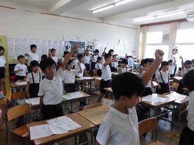 24日には1学期の終業式を行い、子供たちには、「命を守ること、自転車に乗る際はヘルメットをかぶること」「目標を決めて充実した夏休みを送ること」を話しました。