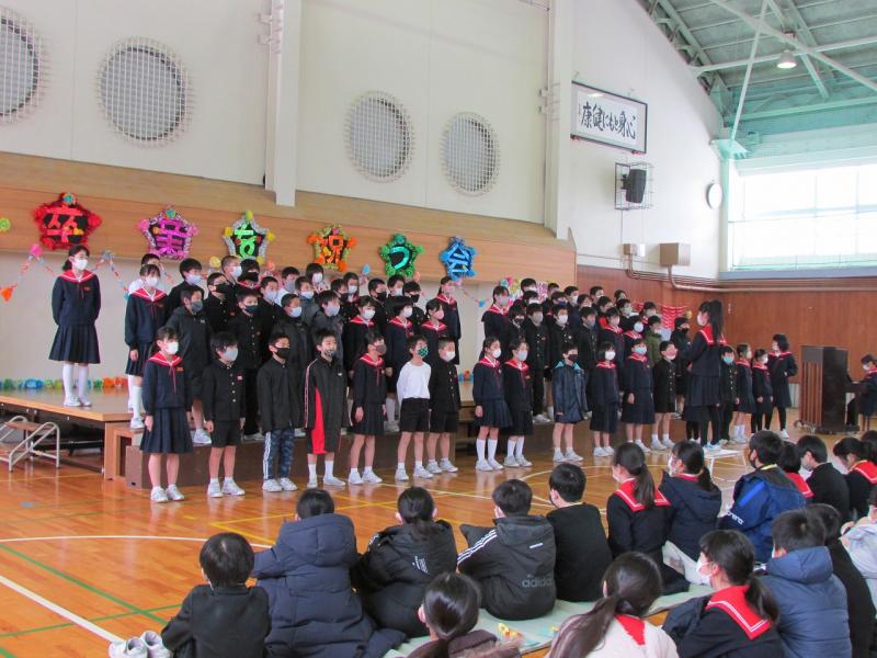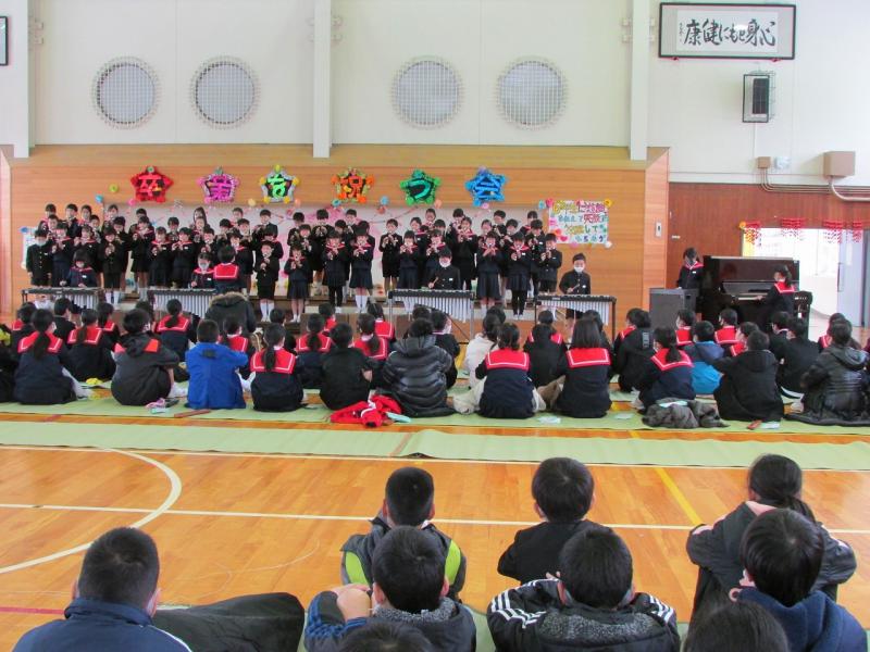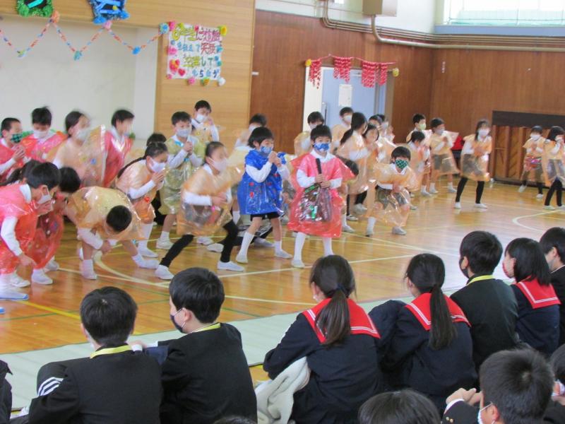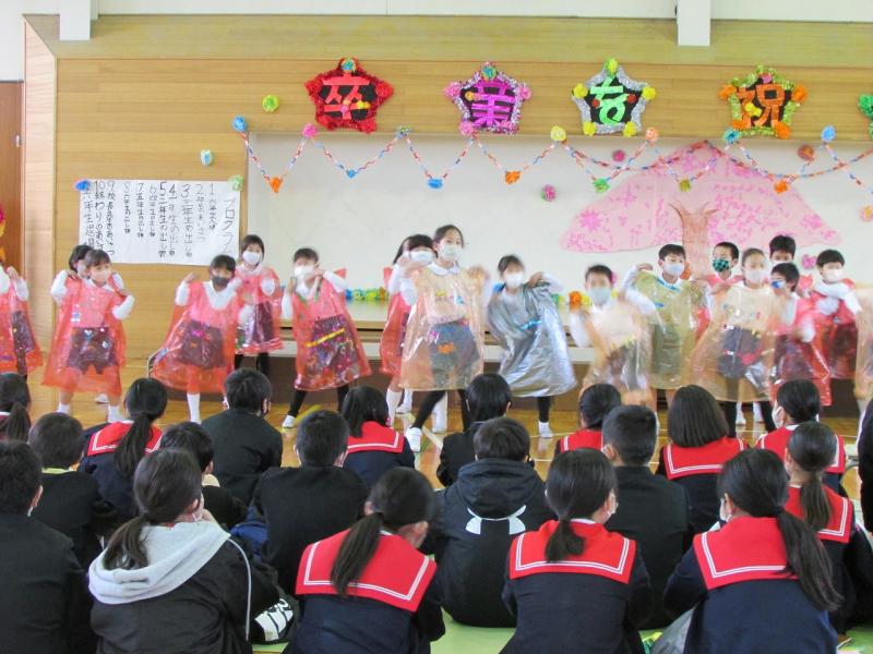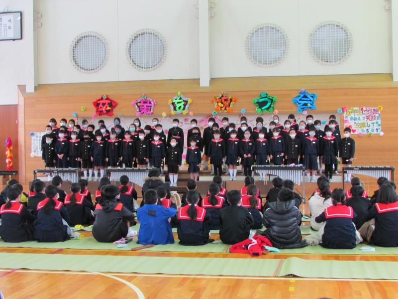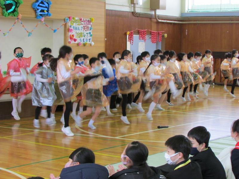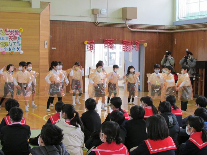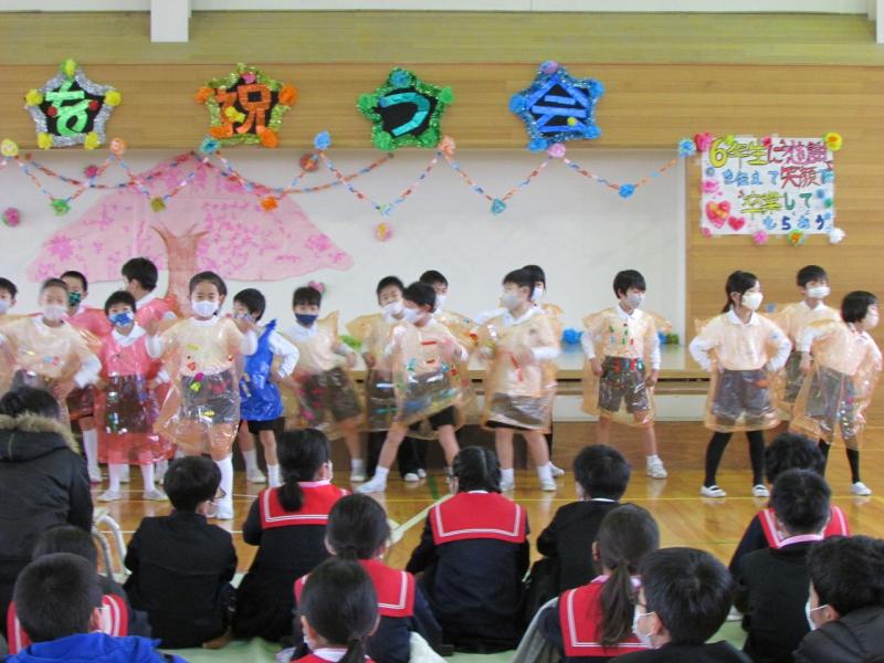 1~5年生は、6年生への感謝の思いが込められた出し物を披露してくれました。