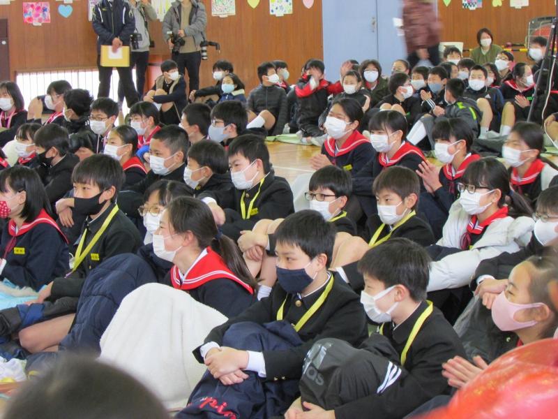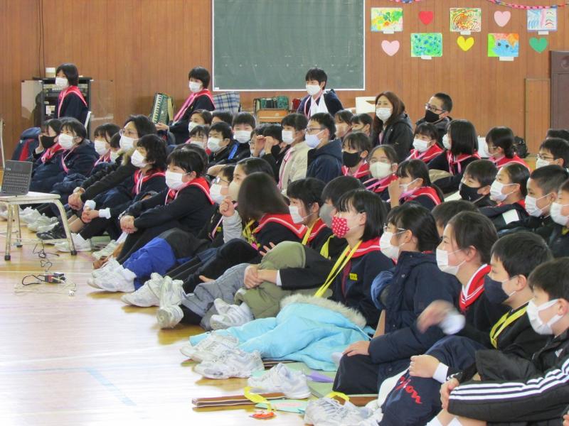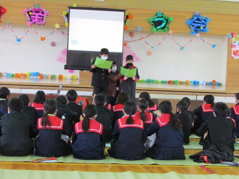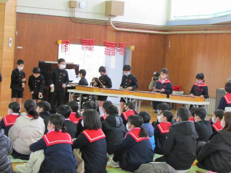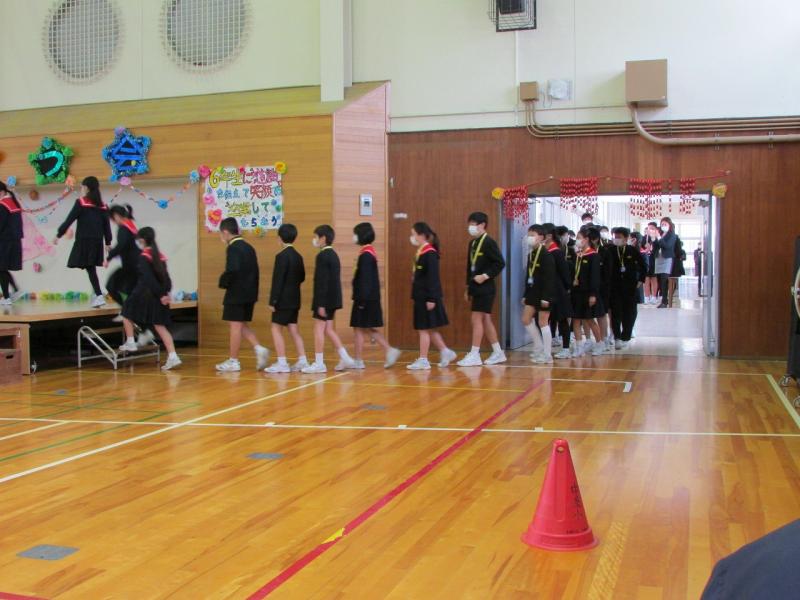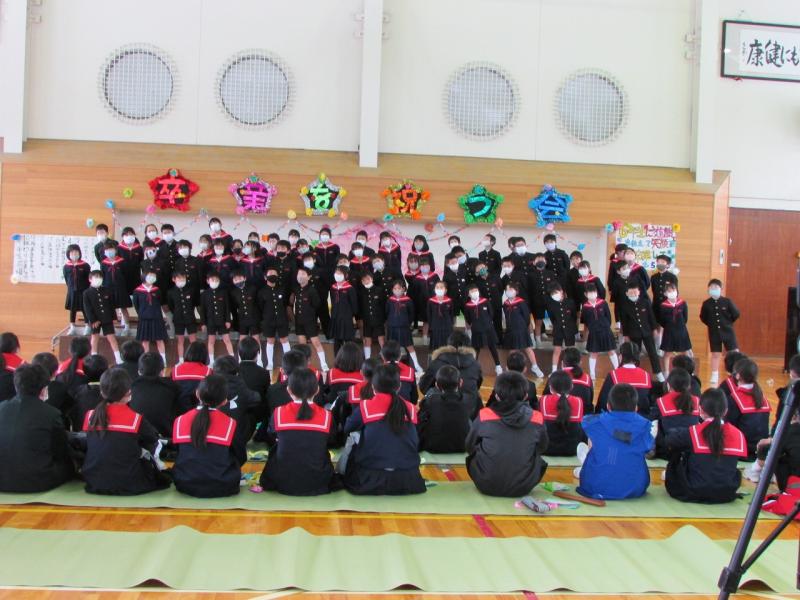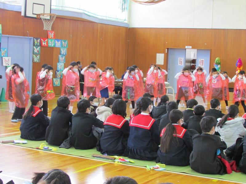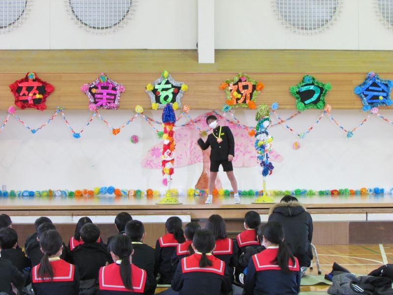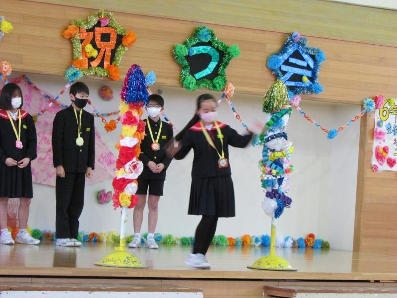 1~5年生は、6年生への感謝の思いが込められた出し物を披露してくれました。
