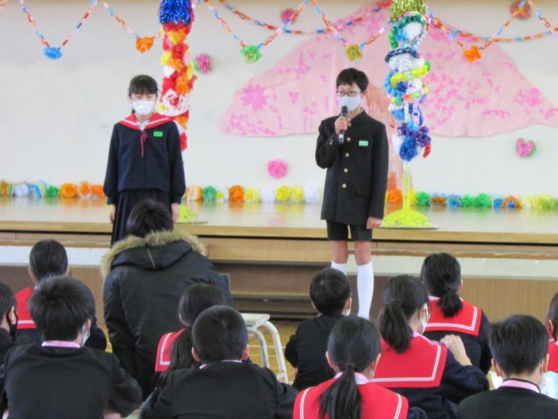 5年生の代表が初めの挨拶をしました。緊張したと思いますが、しっかり話すことができました。