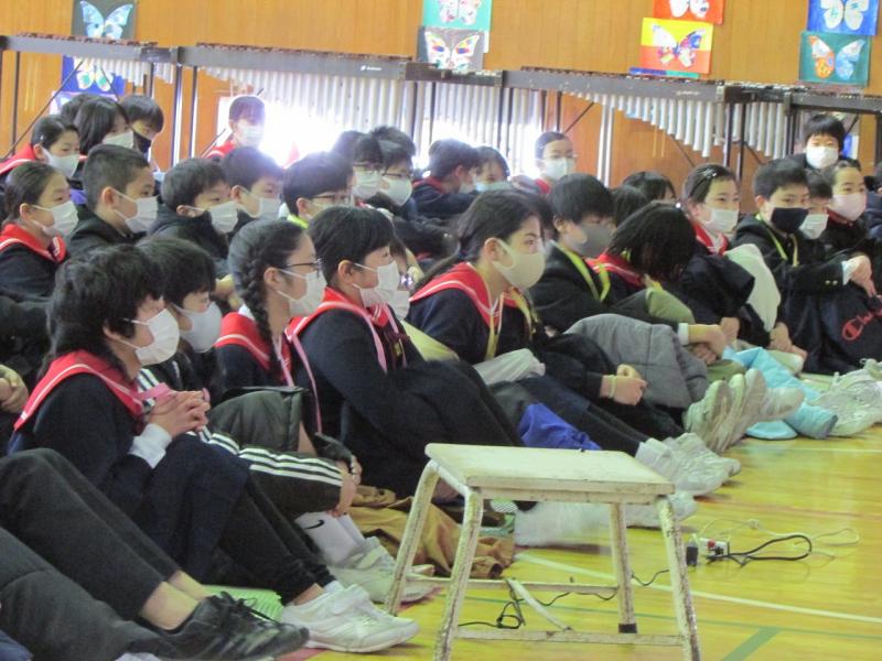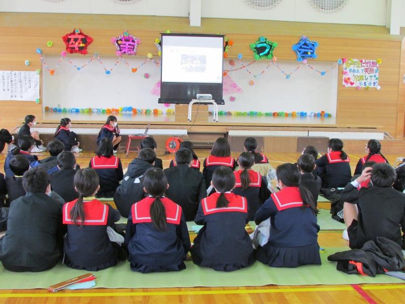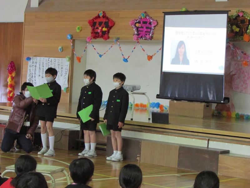 保護者の皆様には、各学年の出し物動画を各学年の部屋からご覧いただけたかと思います。生で見ていただけず申し訳なかったのですが、どの学年も、6年生に感謝の気持ちを伝え、6年生も笑顔があふれました。動画をご覧になり、「感動しました。動画で見れて良かった。有難うございます。」と伝えてくださる方もいて、配信できてよかったと安堵しました。