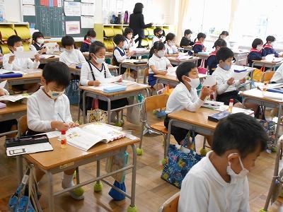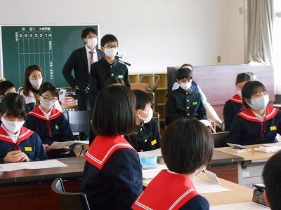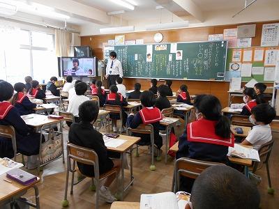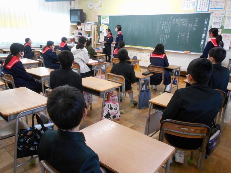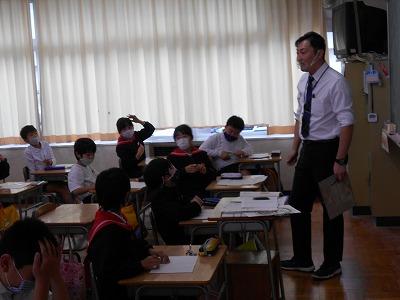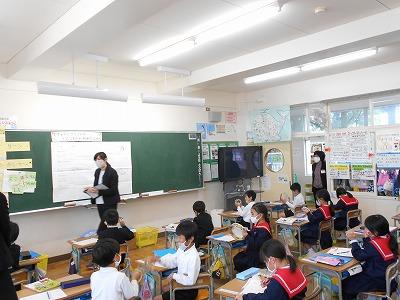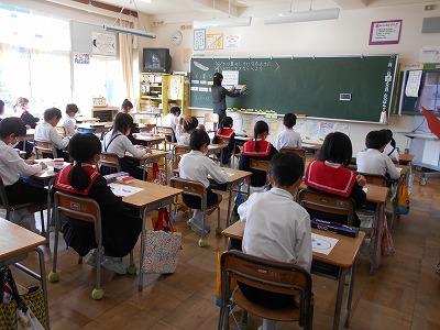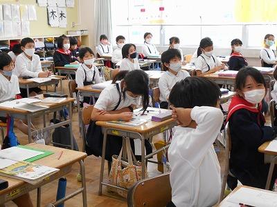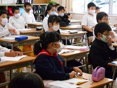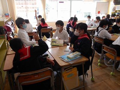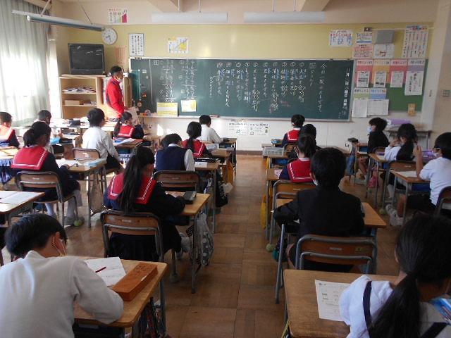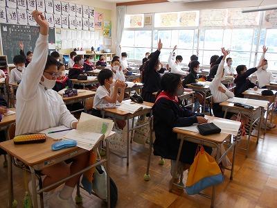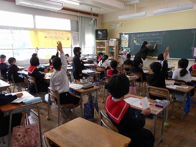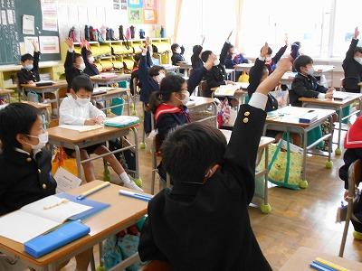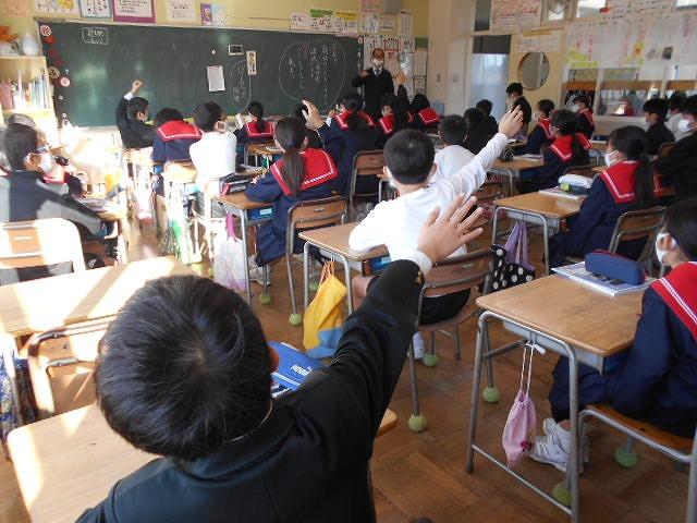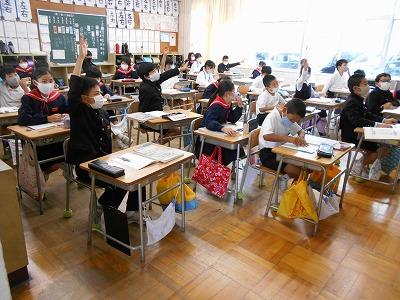 隣のクラスでは、全員の準備ができるのを待つ間、担任がクイズを。
