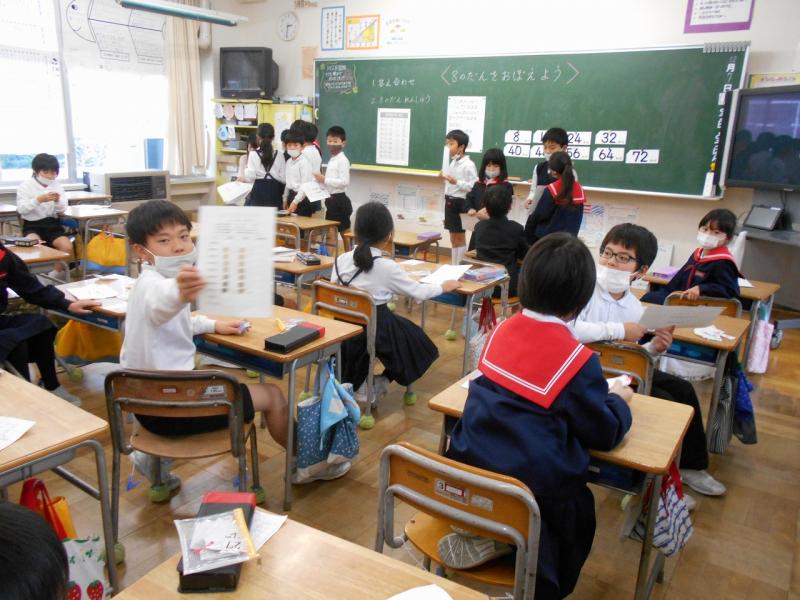 算数。いい考えがたくさん出ました。説明も上手です。次はだれを当てようかな。
