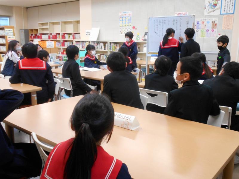 放送委員の6年生の中に代表委員会に出ている子がいて、ぜひ良い話し合い方を全校に知ってもらいたいと提案し、実行することになったそうです。