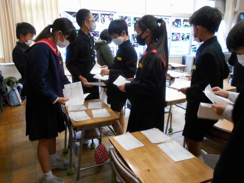 担任が、各自がファイルを持って行っておくように黒板に書いておいたところ、早く来た子何人かが気を利かせて全員の分を配っておいたそうです。素敵ですね。担任が、その行動を知らせ、みんな、つながりを感じていました。