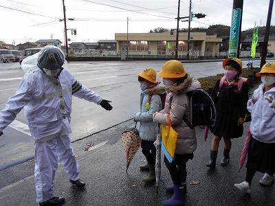 今日は、移動交番ということで、県警の方も来られ、子供たちの下校を見守ってくださいました。雪の降る中、左右確認の声かけを子供たちにしてくださっていました。