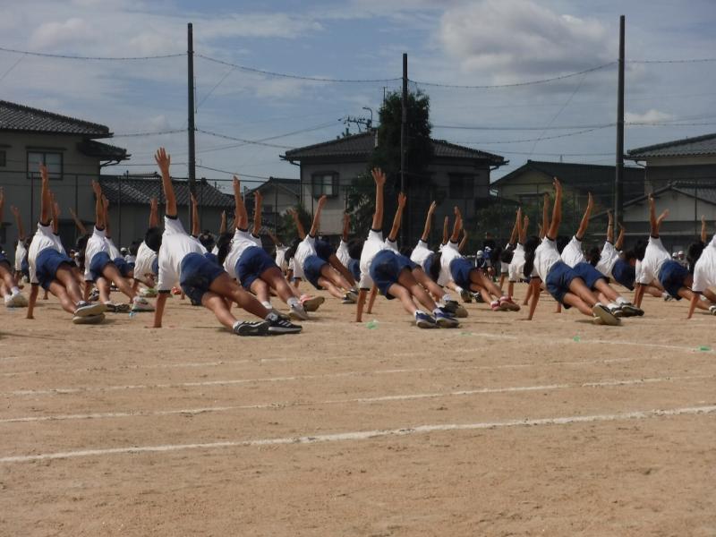 特に、5・6年生の演技は、まさにスローガン通りに「心を一つに」した演技であり、見ていた1~4年生も保護者の皆様も、私たち職員も引き込まれ、運動場にいた全員の心が一つになっていたと思います。