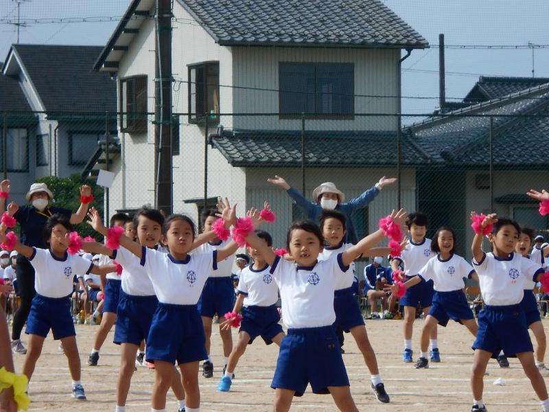 元気な声と、風のようなポンポンの動きで、爽やかな運動会にしてくれました。