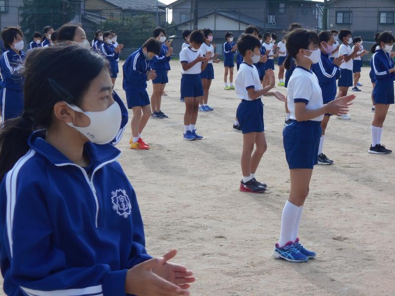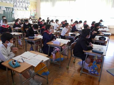 片付け後、集まった5・6年生を先生方がたくさんほめて下さいました。