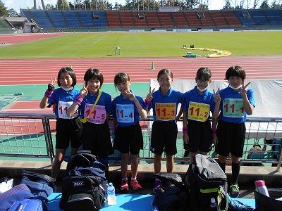 最後は女子記録会。女子チーム唯一の5年生です。6年生から、走り方のアドバイス、大声援を受け、スタートに向かいます。緊張したと思いますが、こちらも見事4位入賞!