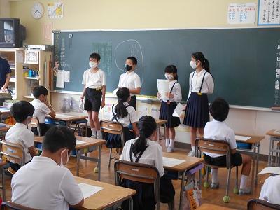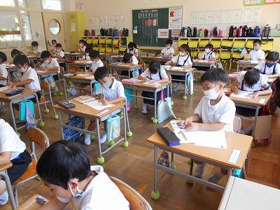 早速、漢字を習っているクラスや、国語科の「話す・聞く」単元のクイズ作りをしているクラス、算数の学習に取り組んでいるクラスなどもあり、1学期の頑張りがそのまま続いている様子が見えました。