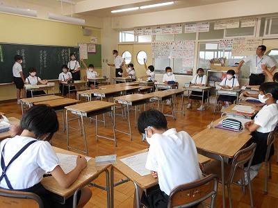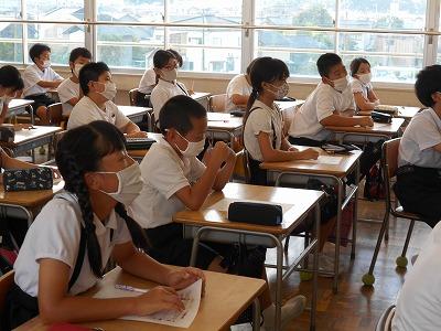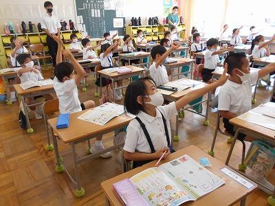どのクラスからも、夏休みの思い出を話したり、絵や文章で表したり、2学期のめあてや係を決めたりする、いつもながらの2学期初めの光景がありました。中には、楽しいゲームで心をほぐし、笑顔でいっぱいのクラスもありました。