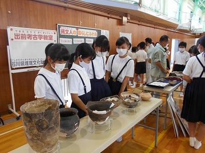 また、学校のすぐ近くから出土した土器等も見せていただき、縄文時代を身近に感じることができました。
