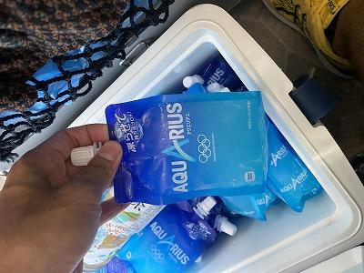 到着後、凍らせたスポーツドリンクを1人に1本ずつ配りました。