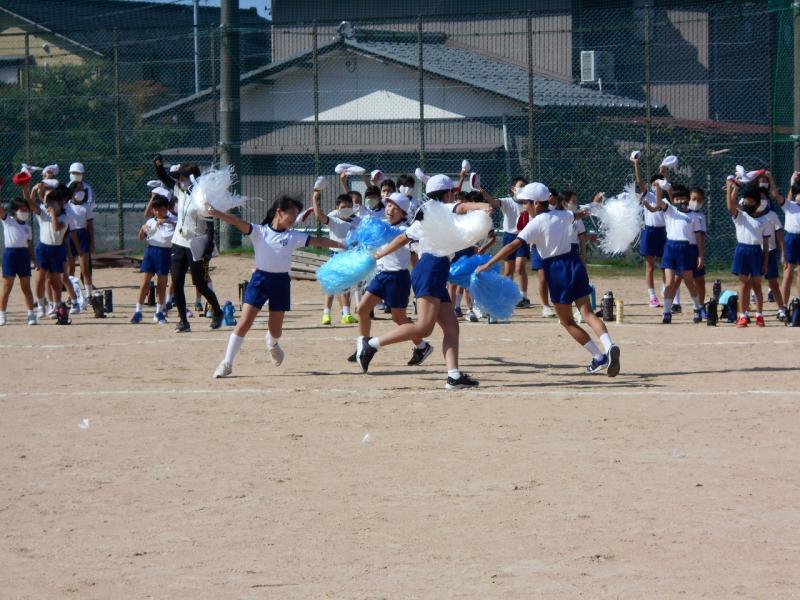 応援団はマスクを外して声を出しますが、その他の子供たちはマスクをして応援します。