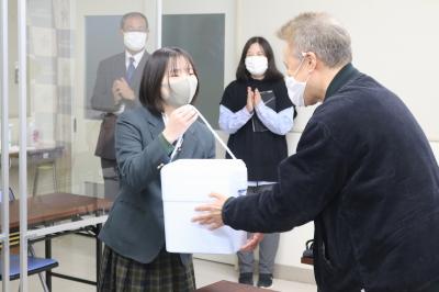 これに対し、本校の弥久保教頭からは「制作時には地域の皆さんの手厚いサポートがあったと聞いております。感謝すると同時に、地域の学校として貢献できたことはうれしいことです。」とお礼が述べられました。