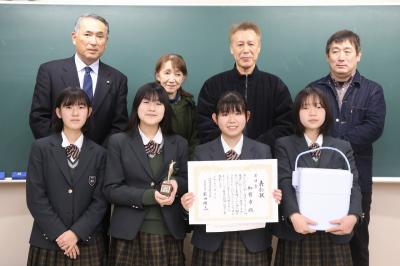 放送部が制作した「HAB 第20回 ふるさとCM大賞」のCMが、第3位を獲得した結果を受けて、山中アイスストリート事務局の方々と加賀市議会議員の今津さんが、本校放送部の努力を称えるため、ご来校くださいました。