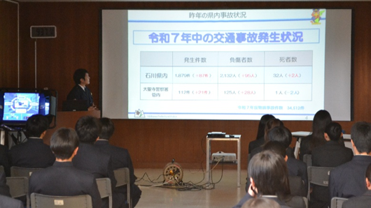 2026年4月24日 10時50分4月22日(水)6限目LHで 大聖寺警察署の交通課より2名をお招きし、交通安全教室を行いました。