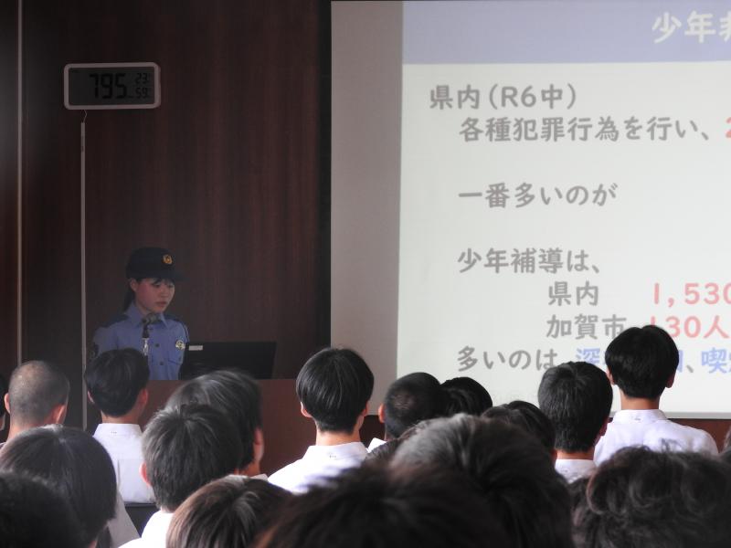 令和7年6月4日(水)6限目に、学校指導課山下指導主事より「ネットトラブル」についてと、大聖寺警察署生活安全課小西様より「少年非行といじめ防止」についてご講演いただきました。