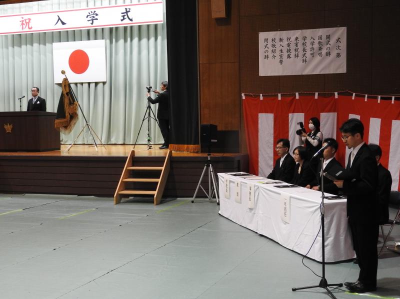 新入生83名(機械システム科54名、情報ビジネス科29名)を代表して、河上若菜さんが新入生の宣誓をしました。