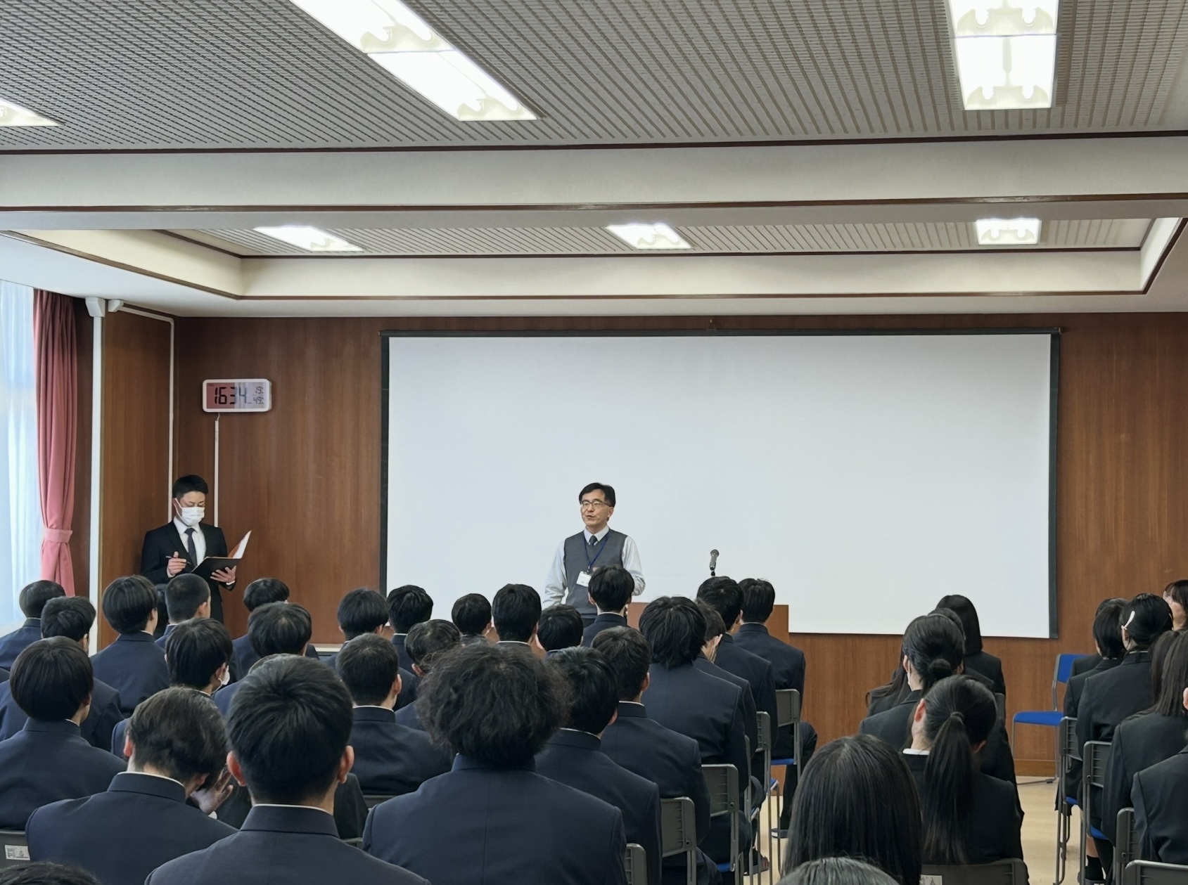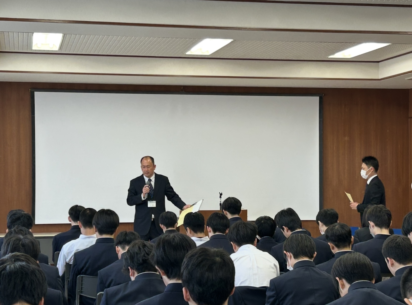 教頭先生をはじめ、各課の先生方から高校生活を送る上で大切な内容を話していただきました。