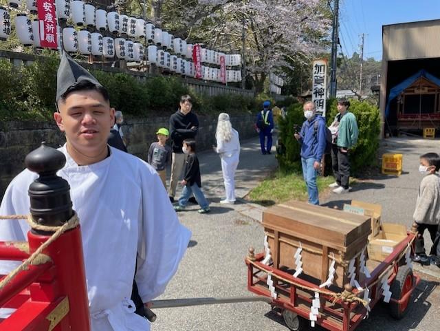 2025年4月14日 14時15分令和7年4月12日(土) 柔道部5名、卓球部5名が加賀神明宮(山下神社)主催の桜まつりに参加しました。