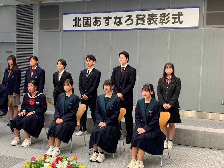 石川県の各地域で活躍している児童・生徒をたたえる「北國あすなろ賞」の表彰式が21日、石川県金沢市で行われた。 北國新聞社が創設した「北國あすなろ賞」は、ボランティアに打ち込んだり、伝統文化の継承に努めたりしている県内の小中学生や高校生を表彰しているものです。