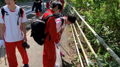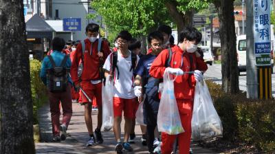 5月2日(火)にボランティア遠足を行いました。3クラスそれぞれが大聖寺の町中を清掃しながら、加賀市中央公園を目指して歩きました。