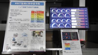 暑さ指数は、熱中症予防対策として設定された指数[℃]です。校内の数カ所にセンサーを設置してIoT技術を使って1か所で暑さ指数を監視することができます。