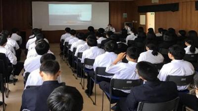 5月23日(火)6限目のLH 大聖寺警察署の交通課より2名、来校していただき、自転車に乗る際の注意を中心に講話をしていただきました。