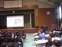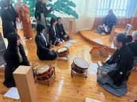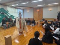 令和7年12月10日(水)4限に、錦城能楽会の皆様8名が来校され、能楽体験をさせていただきました。