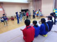 自己紹介の後、読みきかせ・かるた・折り紙・福笑いの4グループに分かれて一緒に遊びました。