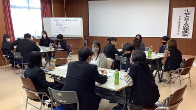 11月3日(木)標記のテーマで、保護者・生徒・先生、合計19人が4グループに分かれて、危険性とルールについて話し合い、最後に話題を共有しました。