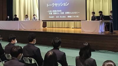 また、トークセッションでは、同じく大同工業㈱で働く卒業生2人と「やりがい」「悩みと解消法」「企業選択の理由」「高校で学んで良かったこと」について語っていただきました。特に印象に残ったのは、高校で学んで良かったことです。まずは「挨拶」で、顔を覚えてもらって得をしたことです。そして、資格取得により即戦力として働けていることです。