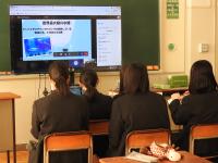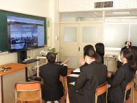 11月19日(金) 本校情報ビジネス科2年生の生徒代表と沖縄県立名護商工観光科2年生とがオンラインで交流会を行いました。沖縄県は本校の修学旅行先であり、名護商工の生徒から沖縄県の観光スポットやお土産品などの紹介をしてもらい、最後に生徒同士で交流を深めました。