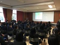 講師をお招きして、ブラジルの民族、スポーツ、歴史、言語、通貨などさまざまなことについて画像や動画を使って教えていただきました。生徒の皆さんはとても興味をもって話しを聞いていました。またブラジルへ行くのに1日以上かかることを知った途端、生徒たちは驚いていました。来ていただいた講師の先生、お忙しい中ありがとうございました。