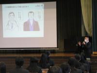 11月17日(水)6限目に3年生対象に小松村田製作所森脇啓介さんをお招きして職業講話を開催しました。