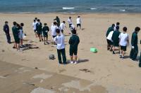 1年生、3年生は海岸のゴミ拾いを熱心に取り組んでいました。2年生は大縄跳び大会などを行い、