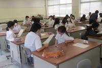 9月7日(月)5・6限、情報ビジネス科3年生の生徒たちは、電話応対に関する事前講習を受けた後、検定に挑みました。事前講習では、講師の方にお越しいただき、敬語・謙譲語の使い方と実務的ビジネスマナーを学びました。お互いに問題を出し合って、ビジネスの慣用句を覚えたり、正解率の低い問題にチャレンジし、理解を深めることができました。ここで学んだことは検定だけではなく、社会人として生きていく上で大切にしてもらいたいです。