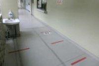 また、本校でも、コロナウイルス対策として、各教室の入り口や廊下など、至る所にアルコール消毒液を置いたり、床に印をつけて、ソーシャル ディスタンスを意識できるようにしました。