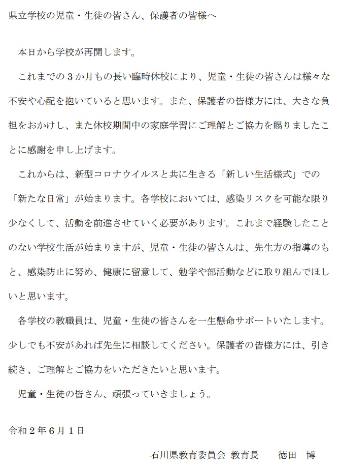 学校再開に向けてのお知らせ